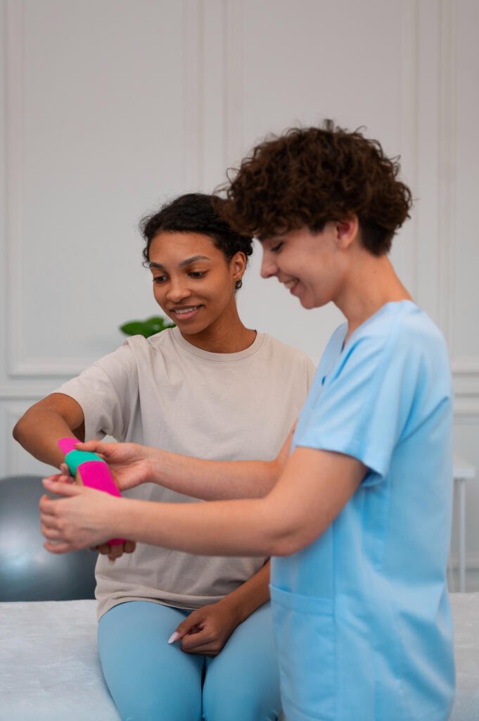 Proper taping provides structural support, improves blood flow, and enhances proprioception, ensuring optimal muscle function during recovery. Different taping methods—such as rigid taping or kinesiology taping—are applied based on the patient’s condition.